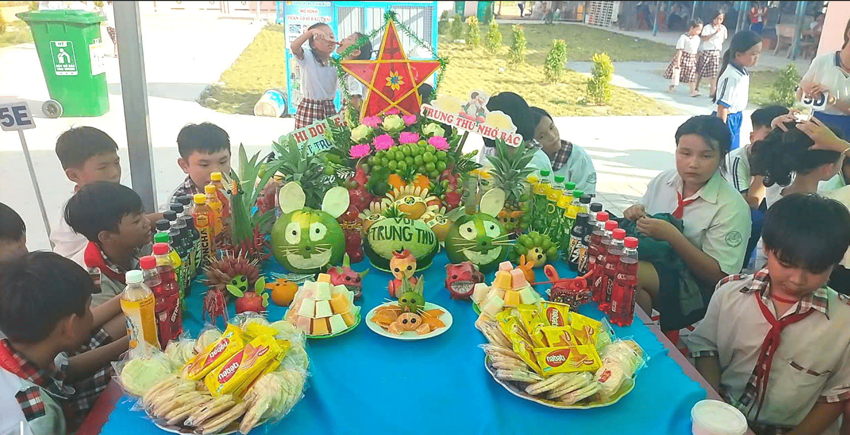 Tại các điểm trường, các em được tham gia nhiều hoạt động hấp dẫn như múa lân - rước đèn ông sao, giao lưu văn nghệ, tham gia các trò chơi dân gian và nhận bánh kẹo, quà Trung thu từ nhà trường cùng các mạnh thường quân. Không khí Trung thu ngập tràn tiếng cười và niềm vui, mang đến cho các em một ngày hội trọn vẹn và đáng nhớ. Đặc biệt, năm nay các trường còn tổ chức hội thi làm lồng đèn và bày mâm cỗ Trung thu, thu hút đông đảo học sinh tham gia. Những chiếc lồng đèn rực rỡ sắc màu, sáng tạo từ bàn tay khéo léo của các em cùng những mâm cỗ được trang trí đẹp mắt đã góp phần tạo nên không gian Trung thu rộn ràng, ấm áp và đậm đà bản sắc truyền thống.