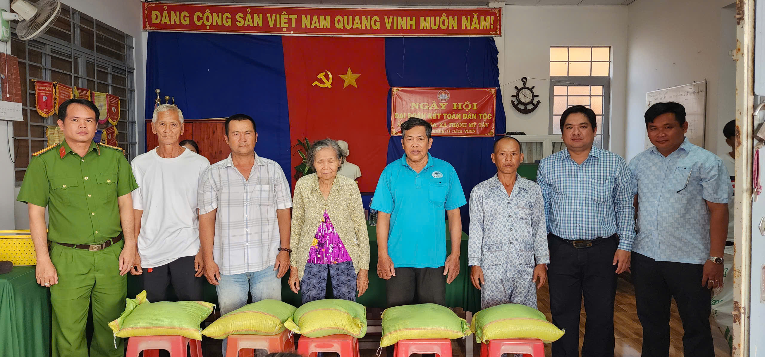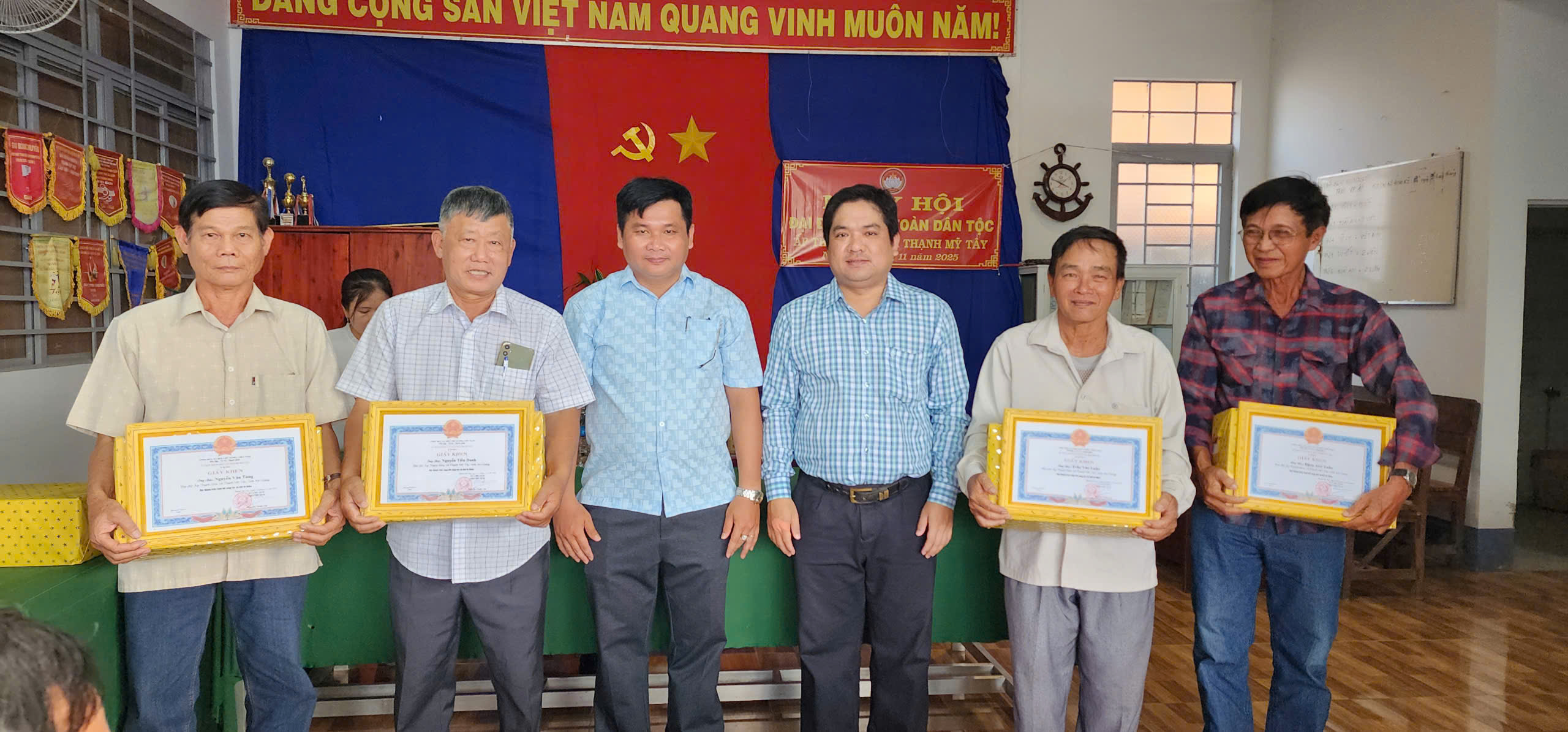 Nhân dịp này, UBND xã Thạnh Mỹ Tây đã khen thưởng cho các tập thể, cá nhân có thành tích xuất sắc trong xây dựng khối Đại đoàn kết toàn dân tộc và thực hiện tốt các phong trào thi đua tại địa phương; trao tặng 20 phần quà cho các hộ khó khăn. Đồng thời, xã cũng bàn giao 01 căn nhà Đại đoàn kết cho một hộ có hoàn cảnh khó khăn về nhà ở, góp phần giúp người dân ổn định cuộc sống.
