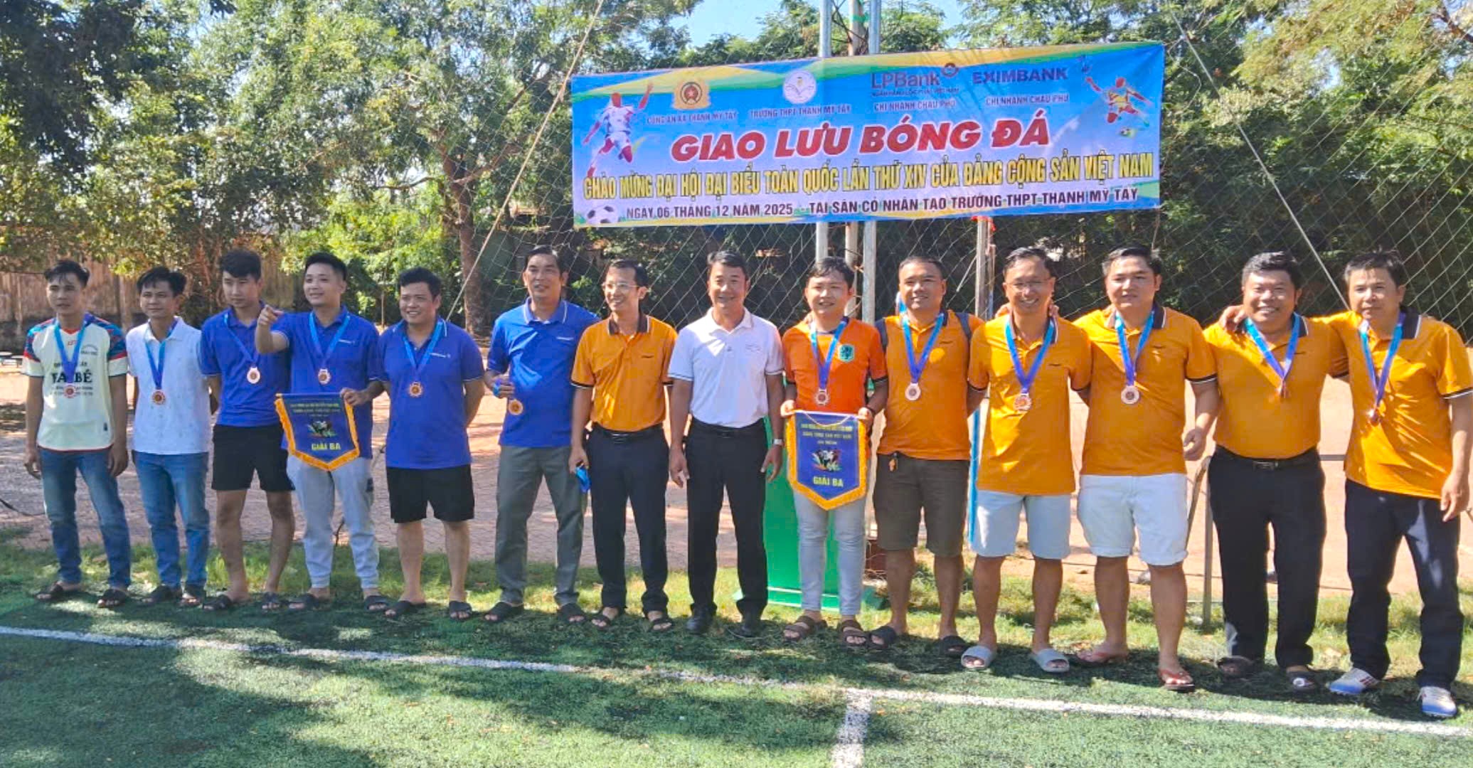 Sau các trận đấu diễn ra hào hứng, đội Công an xã Thạnh Mỹ Tây xuất sắc giành Cúp vô địch, khẳng định tinh thần đoàn kết và phong độ thi đấu nổi bật. Đội Trường THPT Thạnh Mỹ Tây đạt giải Nhì, hai đội bóng của Ngân hàng Lộc Phát Việt Nam và Eximbank đồng hạng Ba.