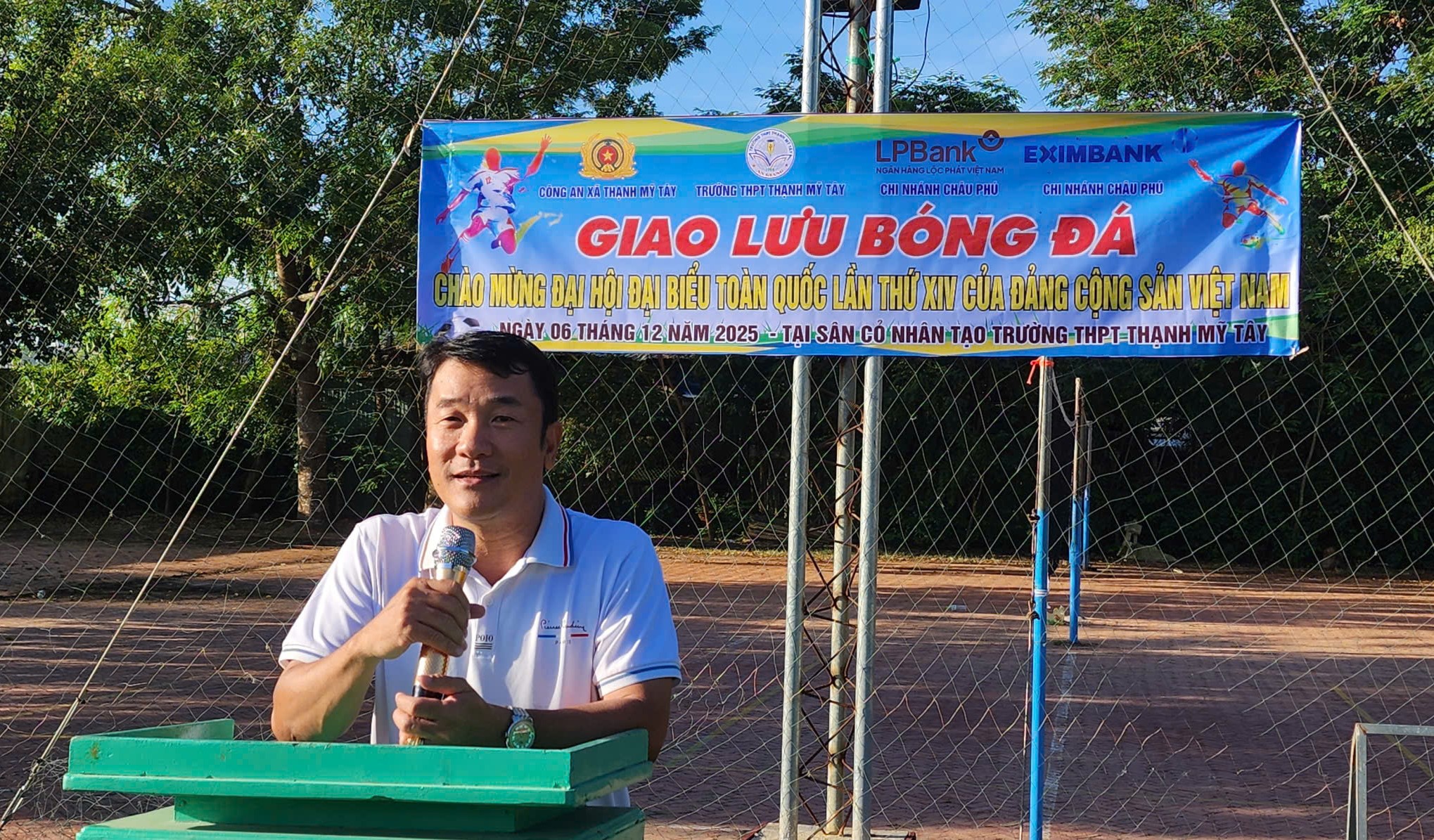 Ngày 06/12/2025, tại sân cỏ nhân tạo Trường THPT Thạnh Mỹ Tây, Chi đoàn Công an xã Thạnh Mỹ Tây tổ chức chương trình giao lưu bóng đá chào mừng Đại hội Đại biểu toàn quốc lần thứ XIV của Đảng Cộng sản Việt Nam. Đến dự có Thượng tá Võ Minh Tân – Trưởng Công an xã Thạnh Mỹ Tây.
