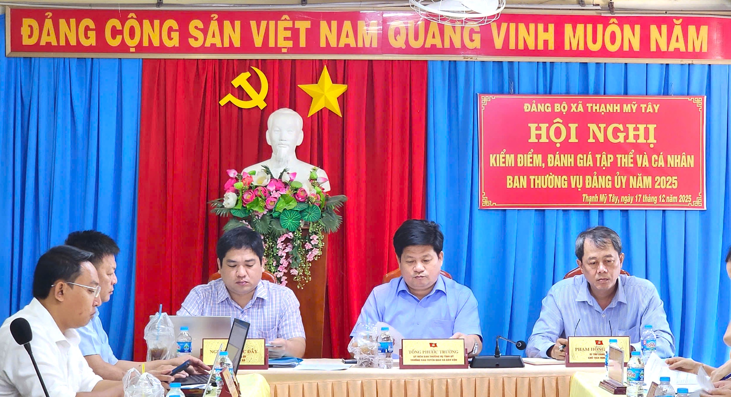 Ngày 17/12/2025, Đảng bộ xã Thạnh Mỹ Tây tổ chức hội nghị kiểm điểm, đánh giá, xếp loại tập thể và cá nhân Ban Thường vụ Đảng ủy xã năm 2025.