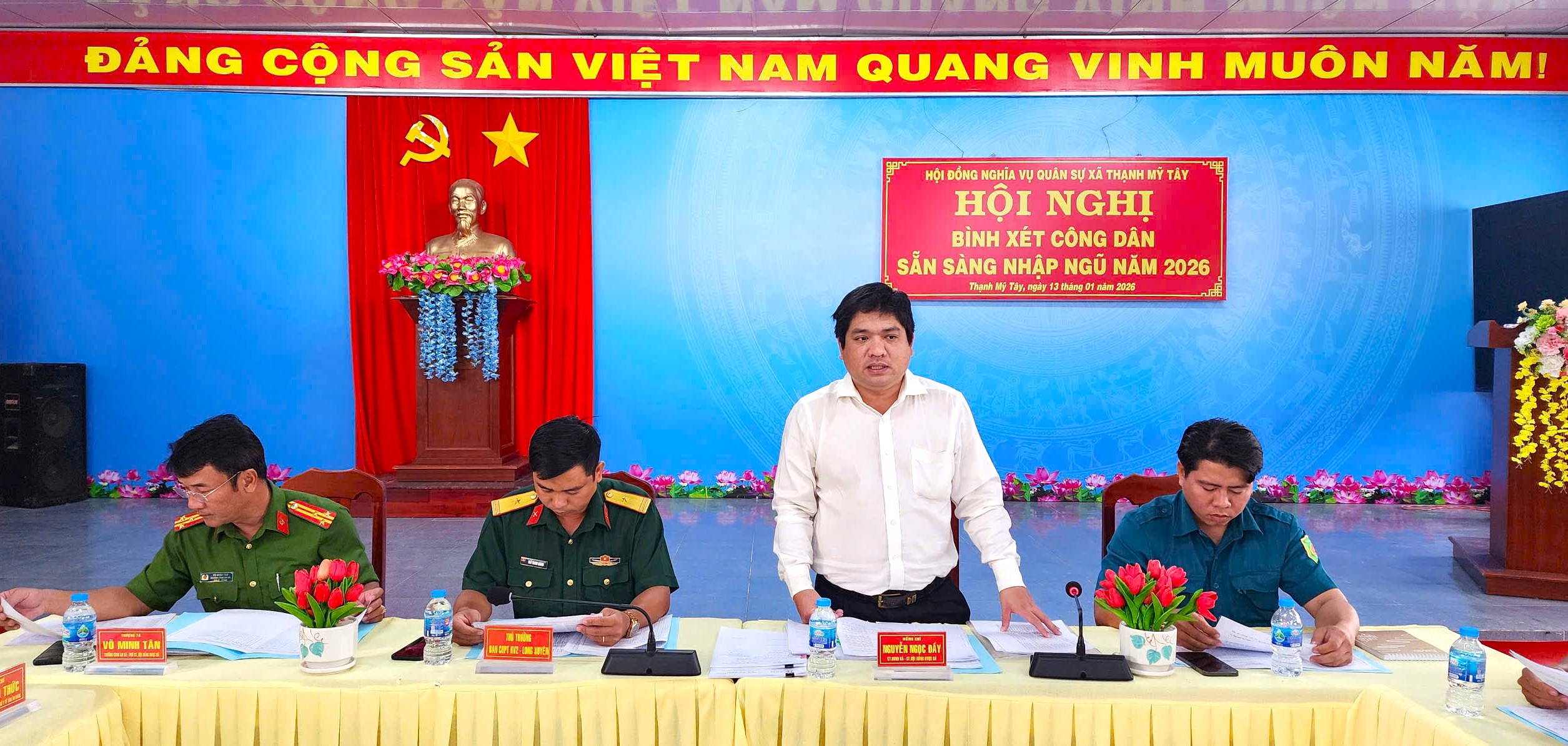Ngày 13/01/2026, Hội đồng Nghĩa vụ quân sự xã Thạnh Mỹ Tây tổ chức hội nghị bình xét công dân sẵn sàng nhập ngũ năm 2026 theo đúng quy trình, bảo đảm dân chủ, công khai và đúng quy định của Luật Nghĩa vụ quân sự.