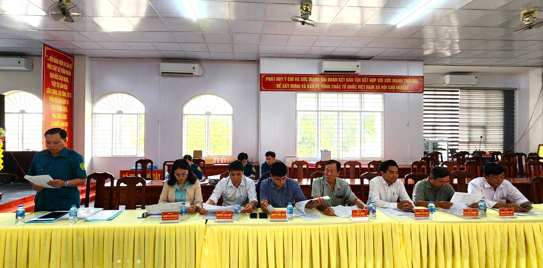 Hội nghị do ông Nguyễn Ngọc Đầy – Phó Bí thư Đảng ủy, Chủ tịch Ủy ban nhân dân xã, Chủ tịch Hội đồng Nghĩa vụ quân sự xã chủ trì. Tham dự hội nghị có đại diện Ban Chỉ huy phòng thủ Khu vực II - Long Xuyên Thiếu tá Ngô Thanh Quang; ông đoàn Minh Triều - Phó Chủ tịch Hội đồng nhân dân xã cùng các thành viên Hội đồng Nghĩa vụ quân sự xã