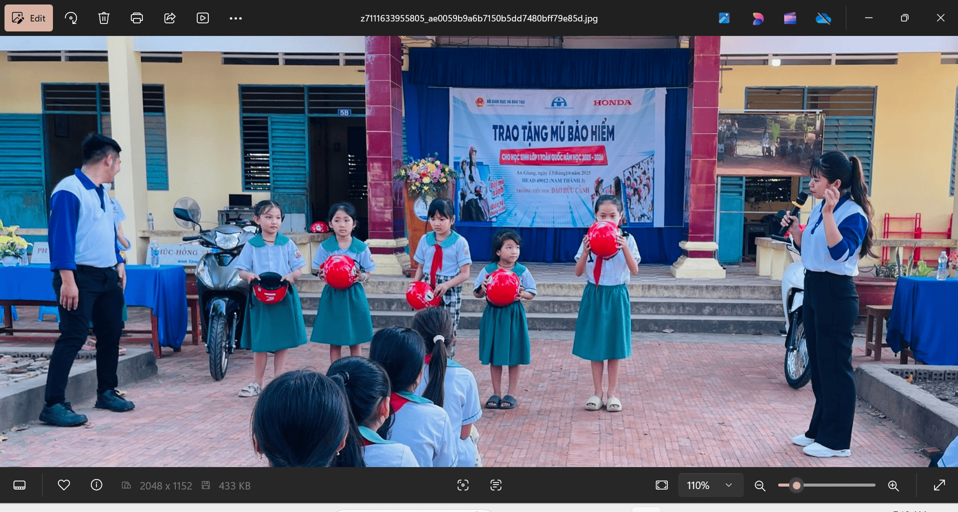 Chương trình “Trao tặng mũ bảo hiểm cho học sinh lớp 1” là hoạt động thường niên của Honda Việt Nam, thể hiện trách nhiệm xã hội của doanh nghiệp, đồng thời góp phần lan tỏa văn hóa giao thông an toàn trong cộng đồng.