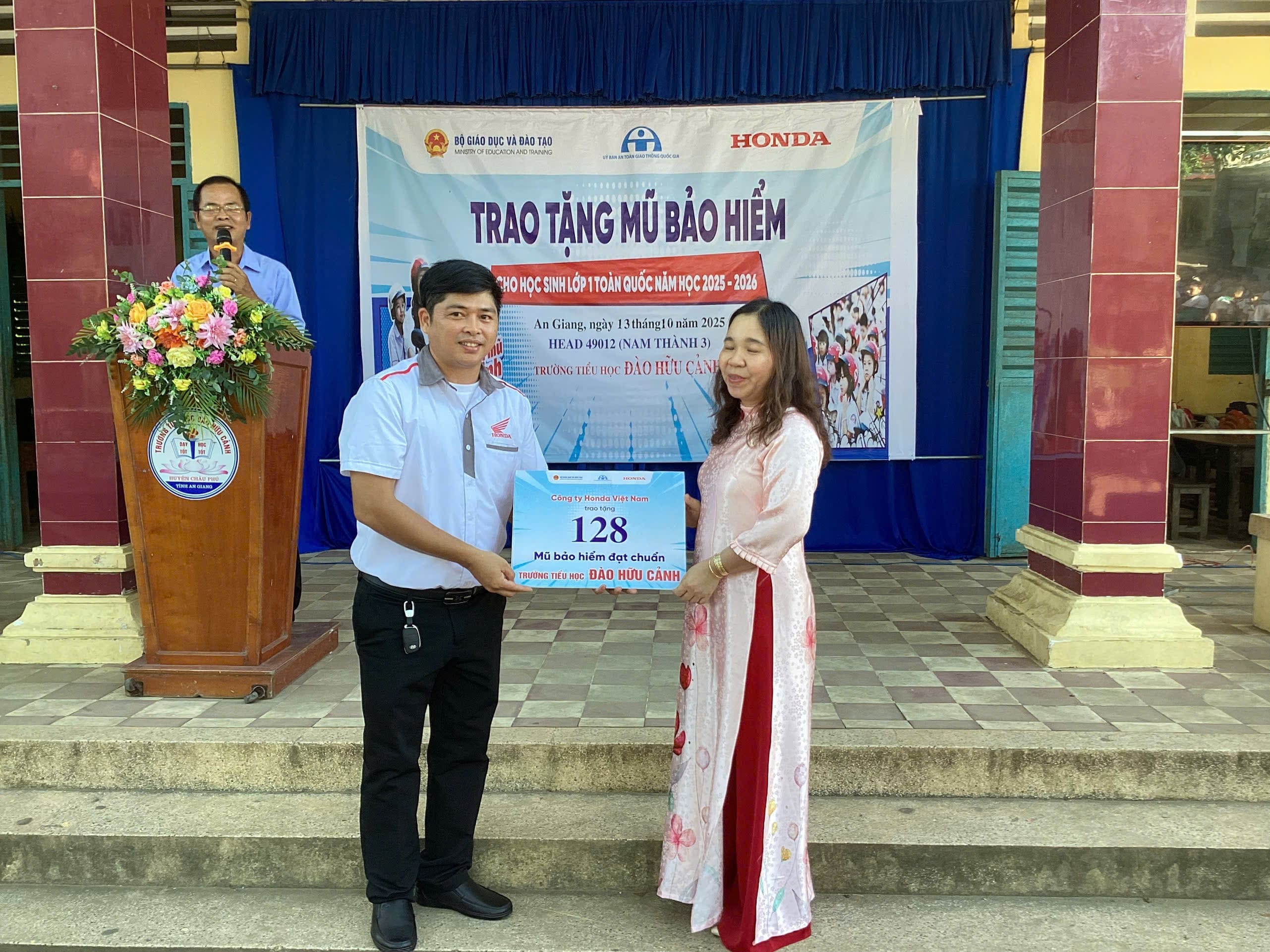 Ngày 13/10/2025, Cửa hàng Honda HEAD Nam Thành 3 phối hợp cùng Ủy ban nhân dân xã Thạnh Mỹ Tây tổ chức chương trình trao tặng mũ bảo hiểm đạt chuẩn cho học sinh lớp 1 tại Trường Tiểu học Đào Hữu Cảnh, xã Thạnh Mỹ Tây.