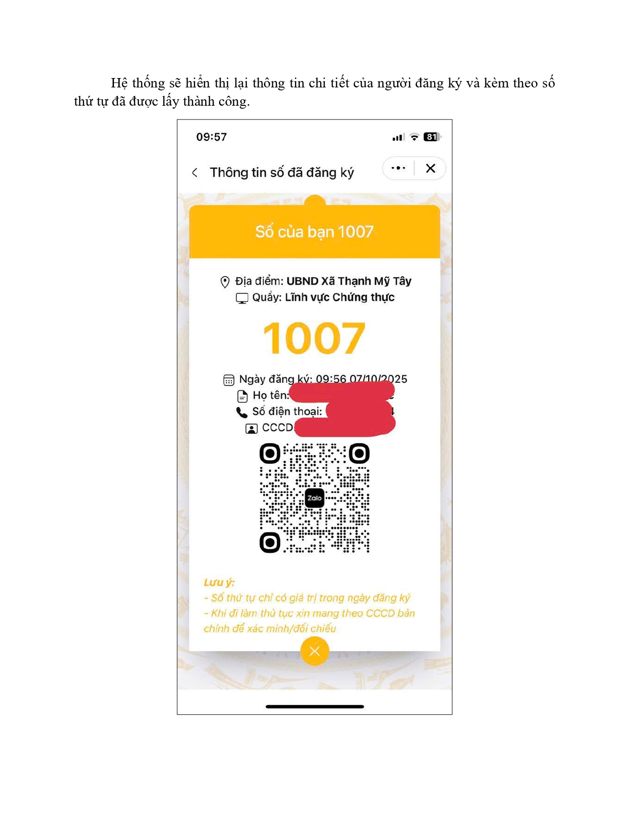 Hướng dẫn ứng dụng Hệ thống lấy số thứ tự qua Zalo khi thực hiện thủ tục hành chính - Tại Trung tâm Phục vụ hành chính công xã Thạnh Mỹ Tây