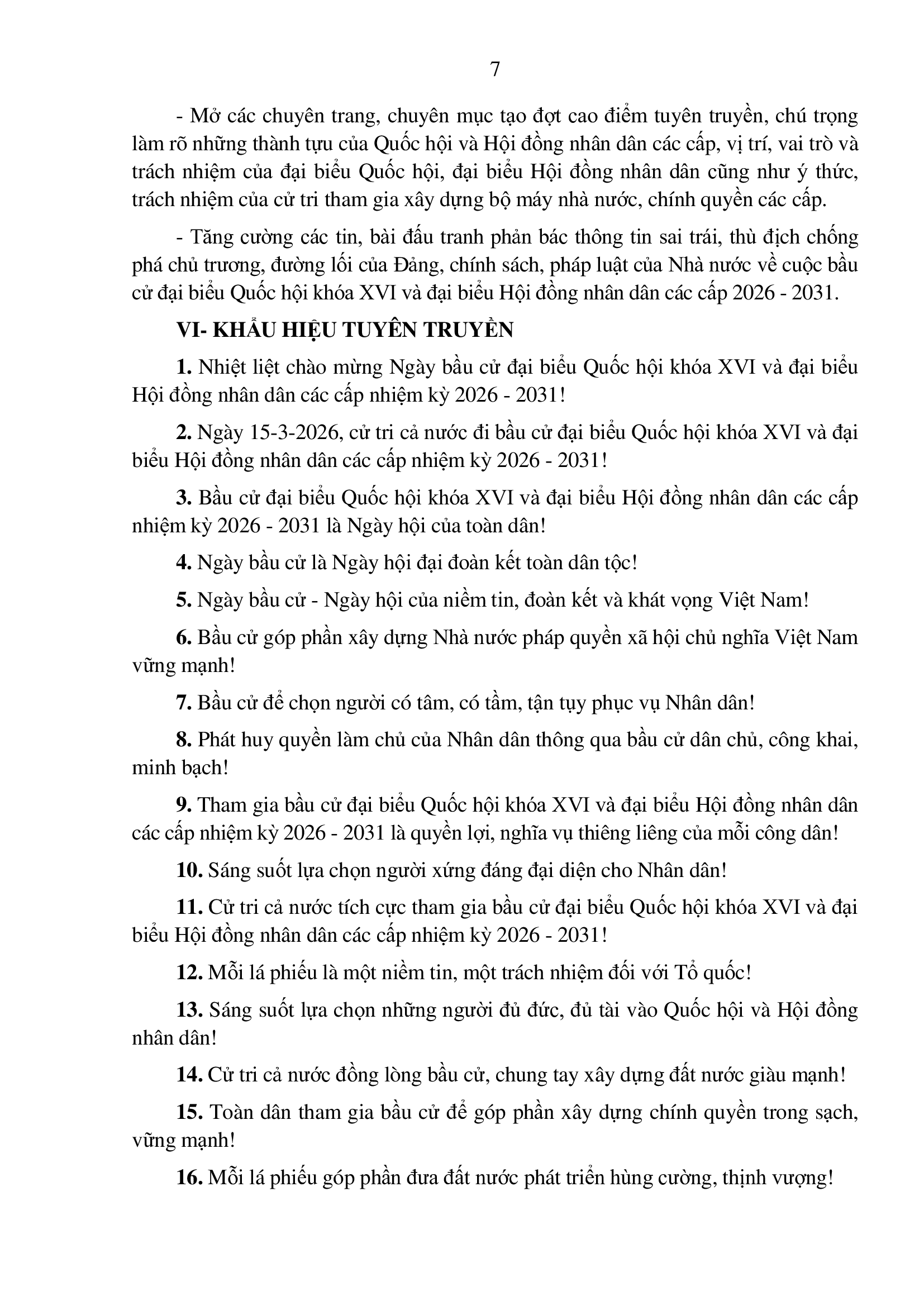 Kế hoạch tuyên truyền bầu cử Đại biểu Quốc hội khóa XVI và bầu cử Hội đồng nhân dân các cấp nhiệm kỳ 2026-2031