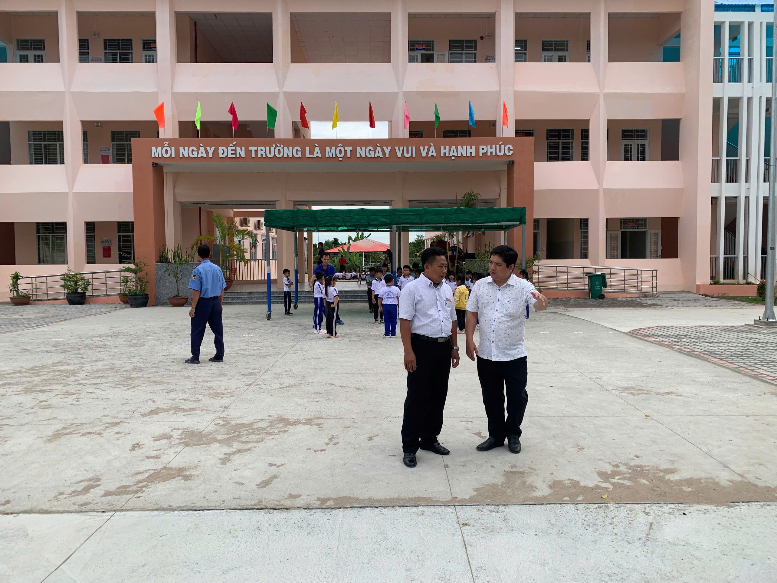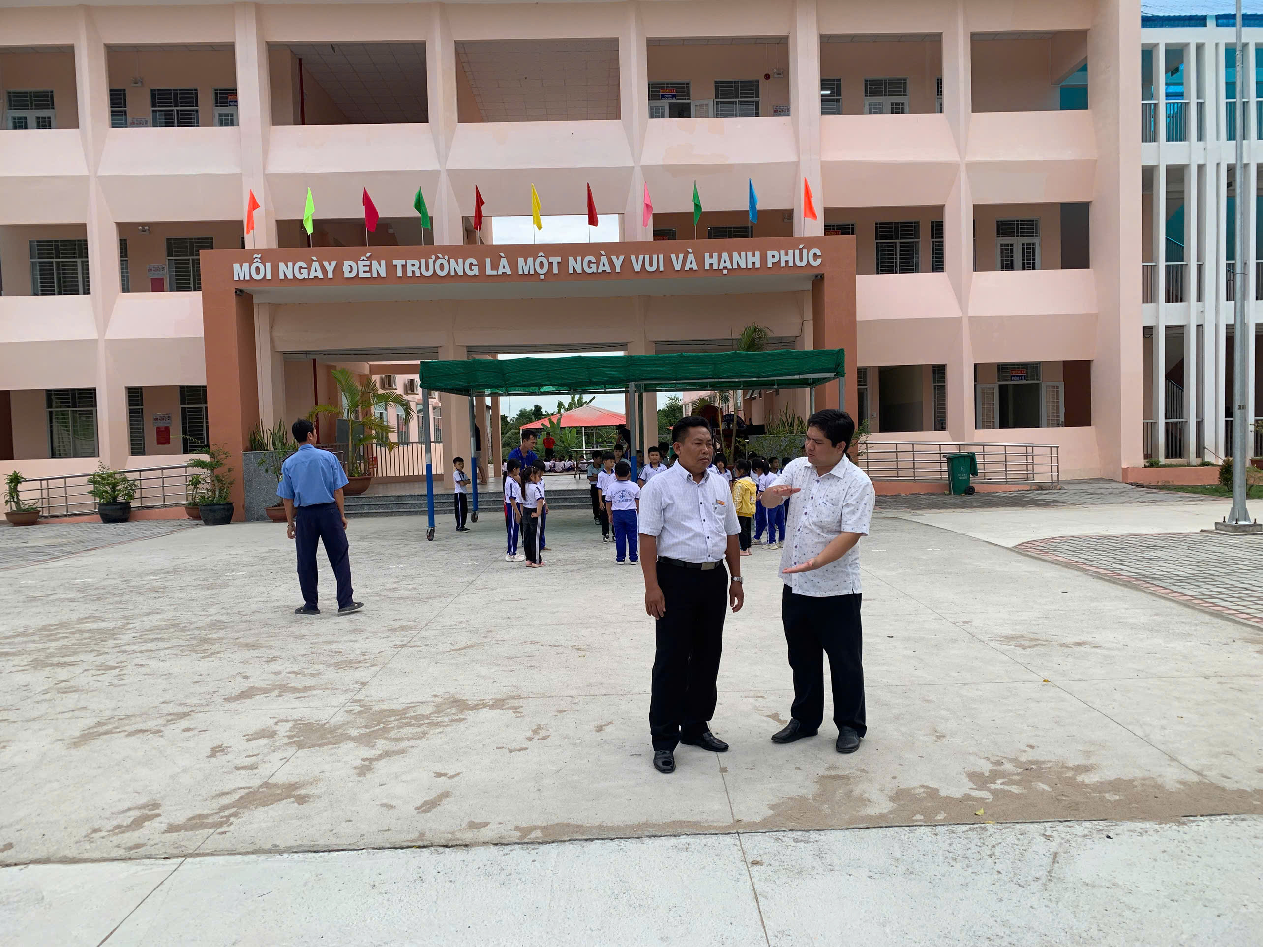 Tại mỗi nơi đến Phó Bí thư Đảng ủy, Chủ tịch UBND xã Nguyễn Ngọc Đầy trao đổi với Ban Giám hiệu nhà trường về các hoạt động của trường như cơ sở vật chất, công tác giảng dạy, công tác huy động học sinh đến trường .v.v…
