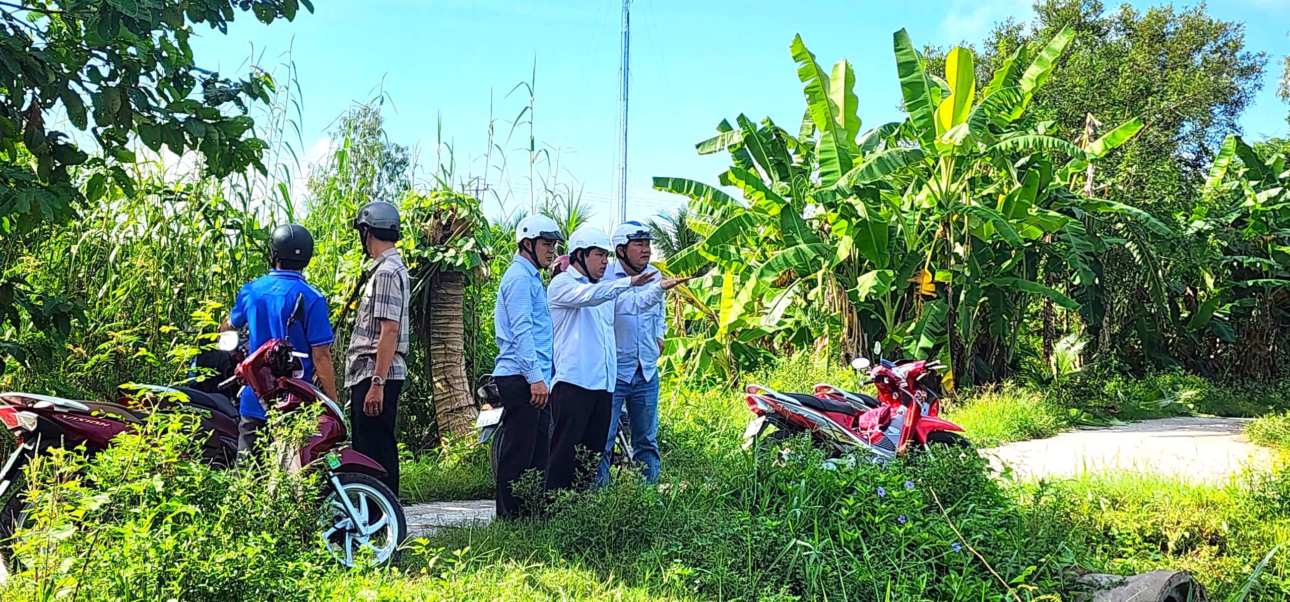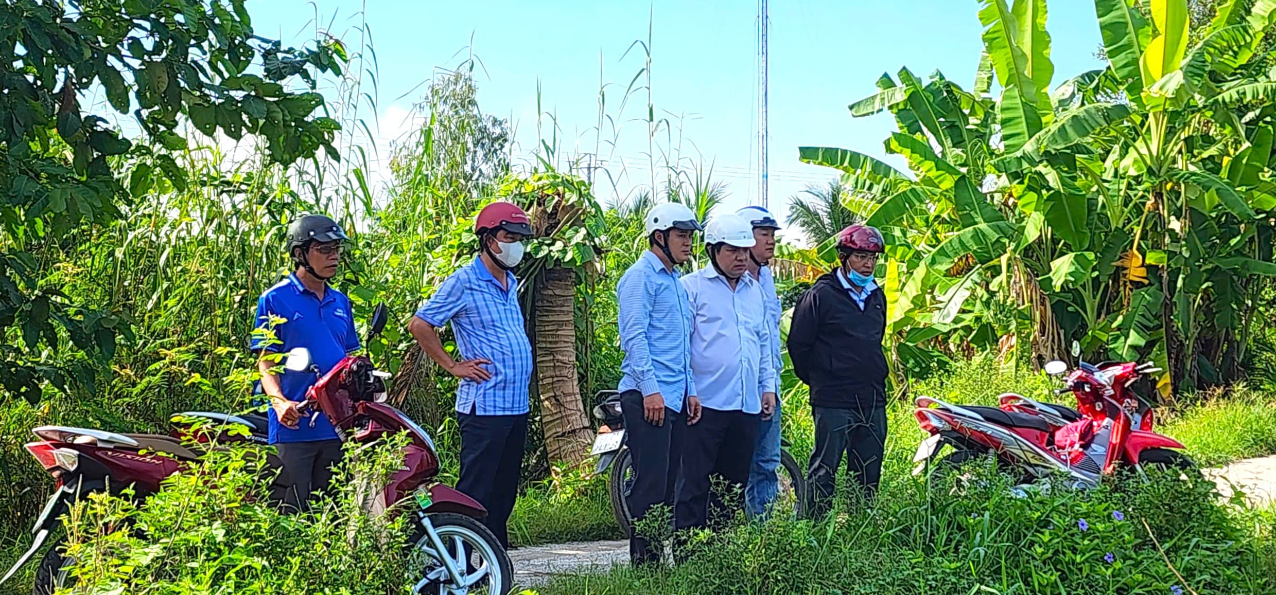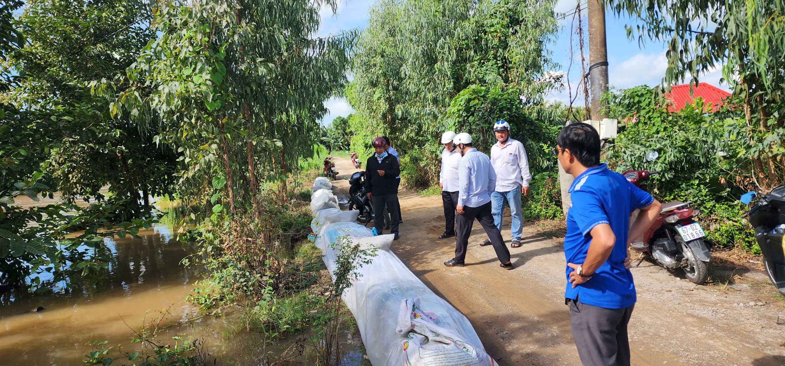 Lãnh đạo UBND xã Thạnh Mỹ Tây kiểm tra hệ thống đê bao các vùng sản xuất 3 vụ