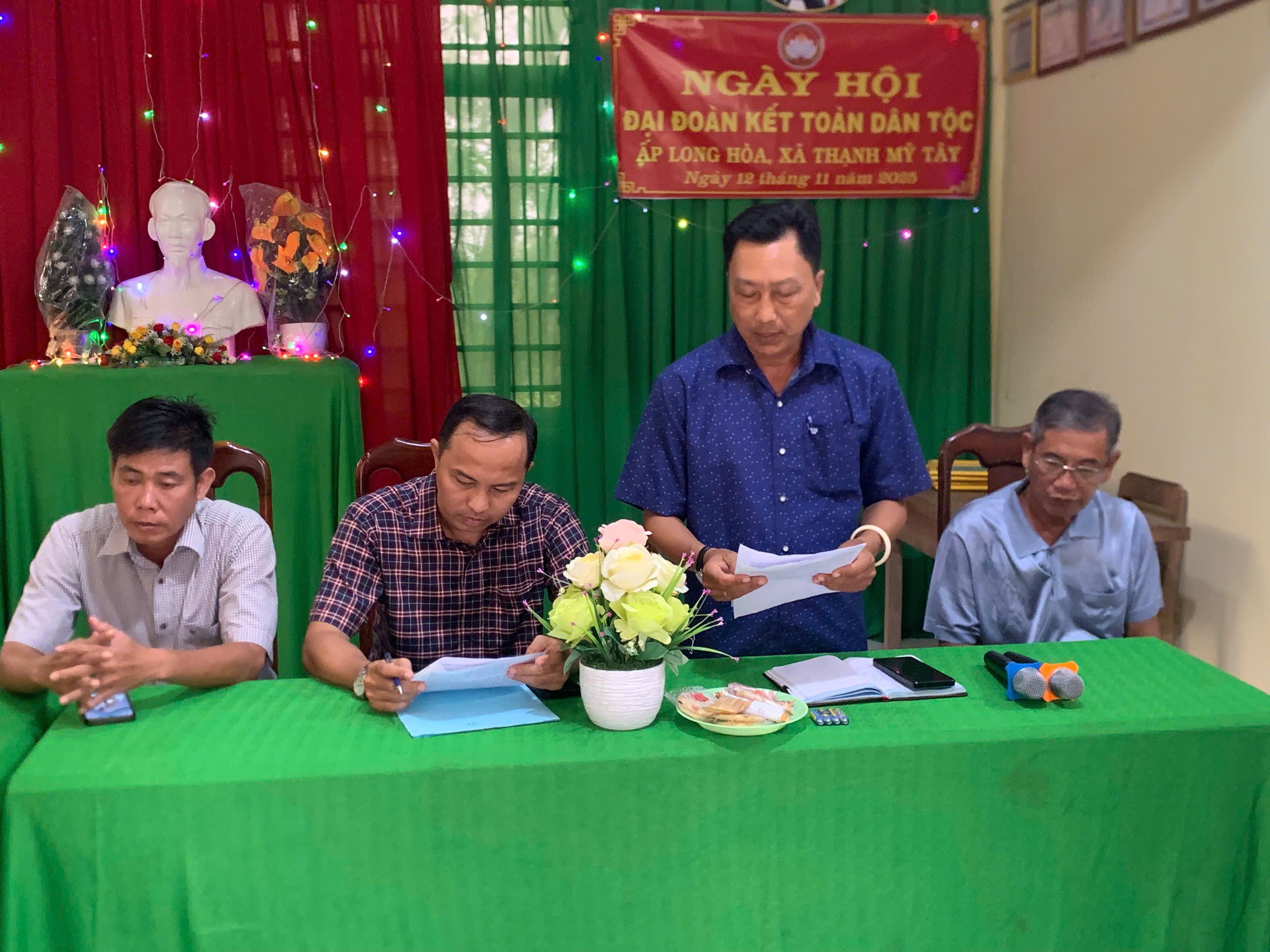 Nhân kỷ niệm 95 năm Ngày truyền thống Mặt trận Dân tộc thống nhất Việt Nam (18/11/1930 – 18/11/2025), ấp Long Hòa, xã Thạnh Mỹ Tây đã long trọng tổ chức Ngày hội Đại đoàn kết toàn dân tộc. Ông Đoàn Minh Triều, Ủy viên Ban thường vụ Đảng ủy - Phó Chủ tịch Hội đồng Nhân dân xã Thạnh Mỹ Tây, cùng ông Ngô Hữu Thiện, Phó Chủ tịch Hội Cựu Chiến binh xã đã đến dự.