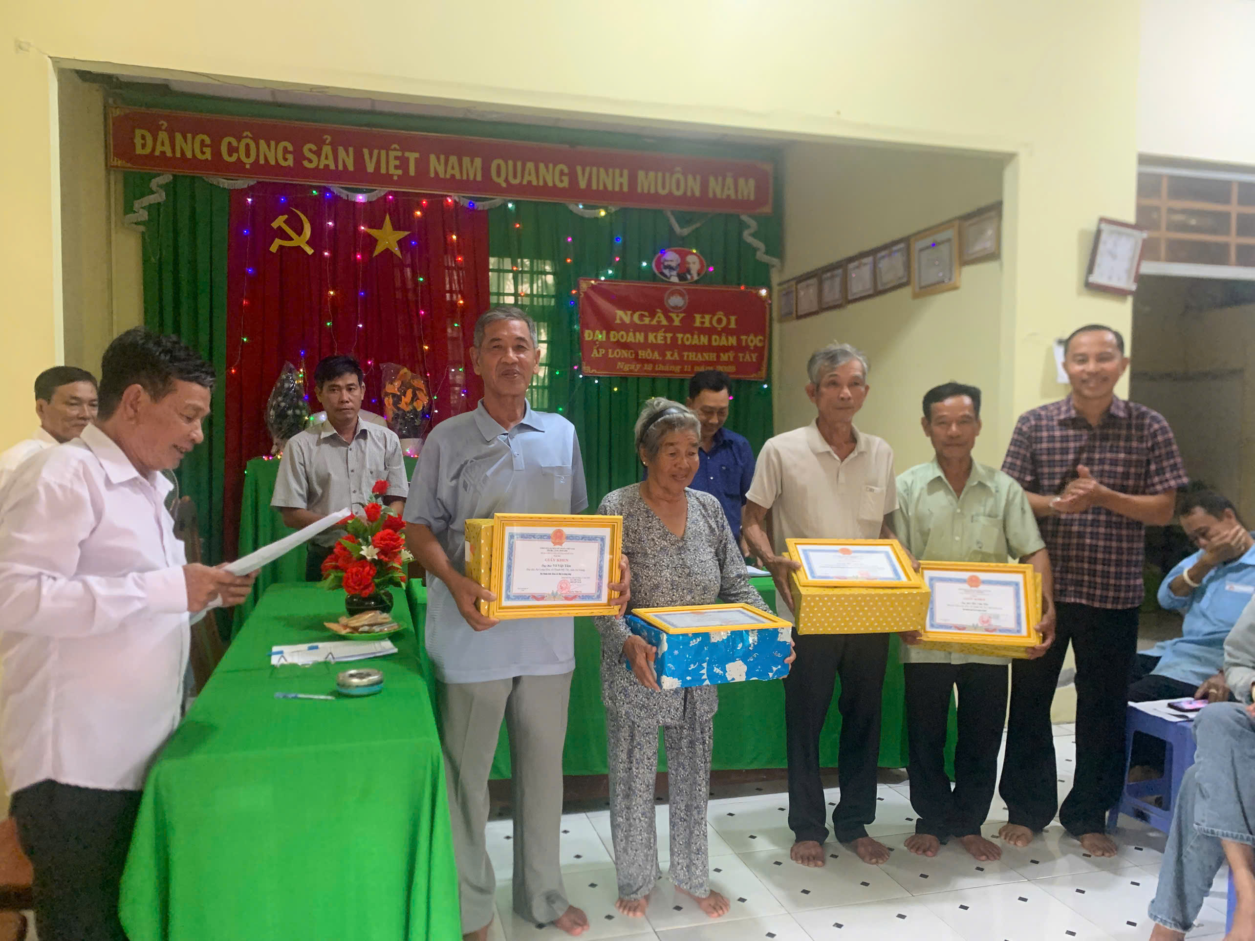 Tại ngày hội các cá nhân tiêu biểu được nhận quà và giấy khen của Ủy ban nhân dân xã Thạnh Mỹ Tây có thành tích trong phong trào thi đua ở địa phương.