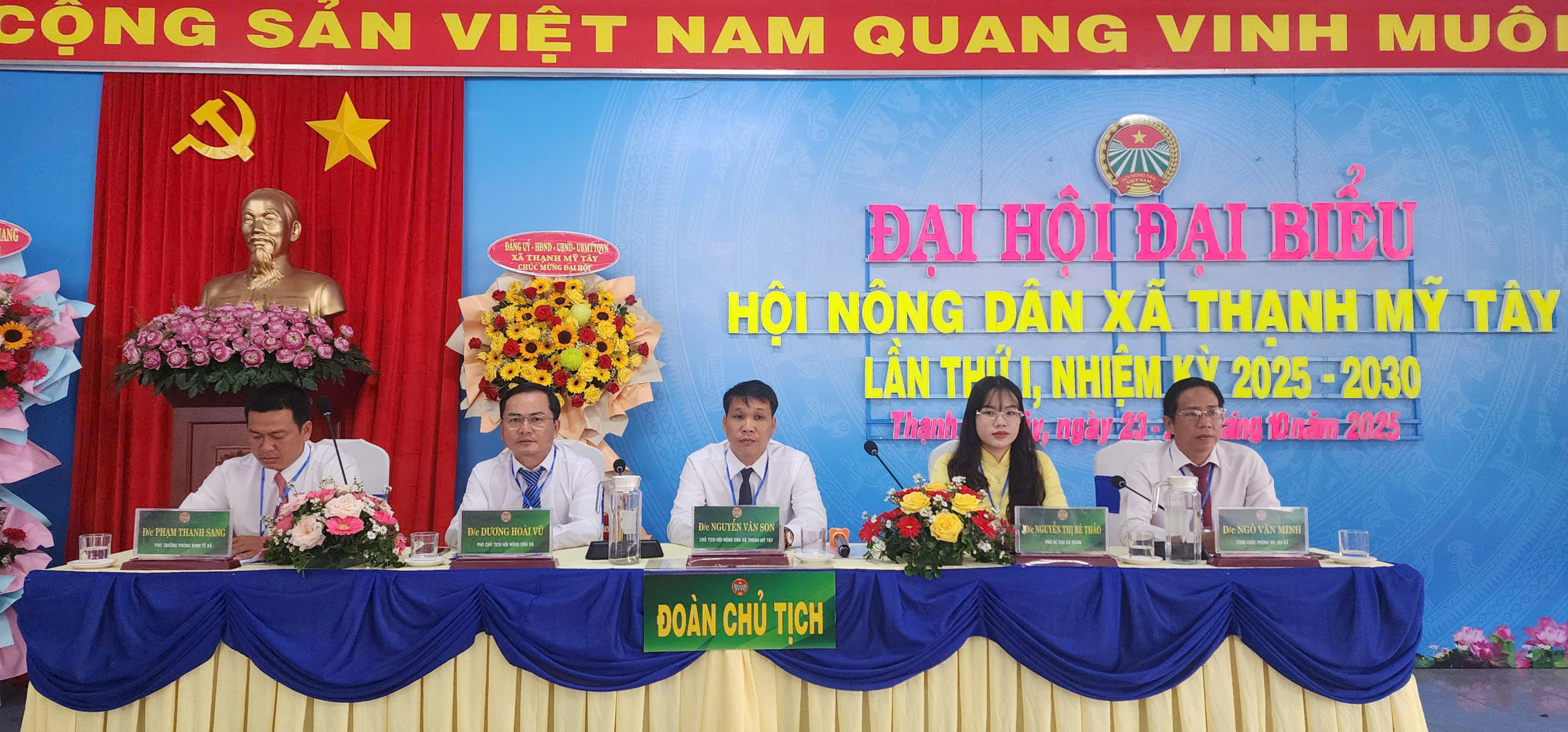 Trong hai ngày 23, 24/10/2025, Hội Nông dân xã Thạnh Mỹ Tây tổ chức Đại hội Đại biểu lần thứ I, nhiệm kỳ 2025 – 2030, với sự tham dự của 90 đại biểu chính thức, đại diện cho hơn 3.000 hội viên nông dân trong toàn xã.