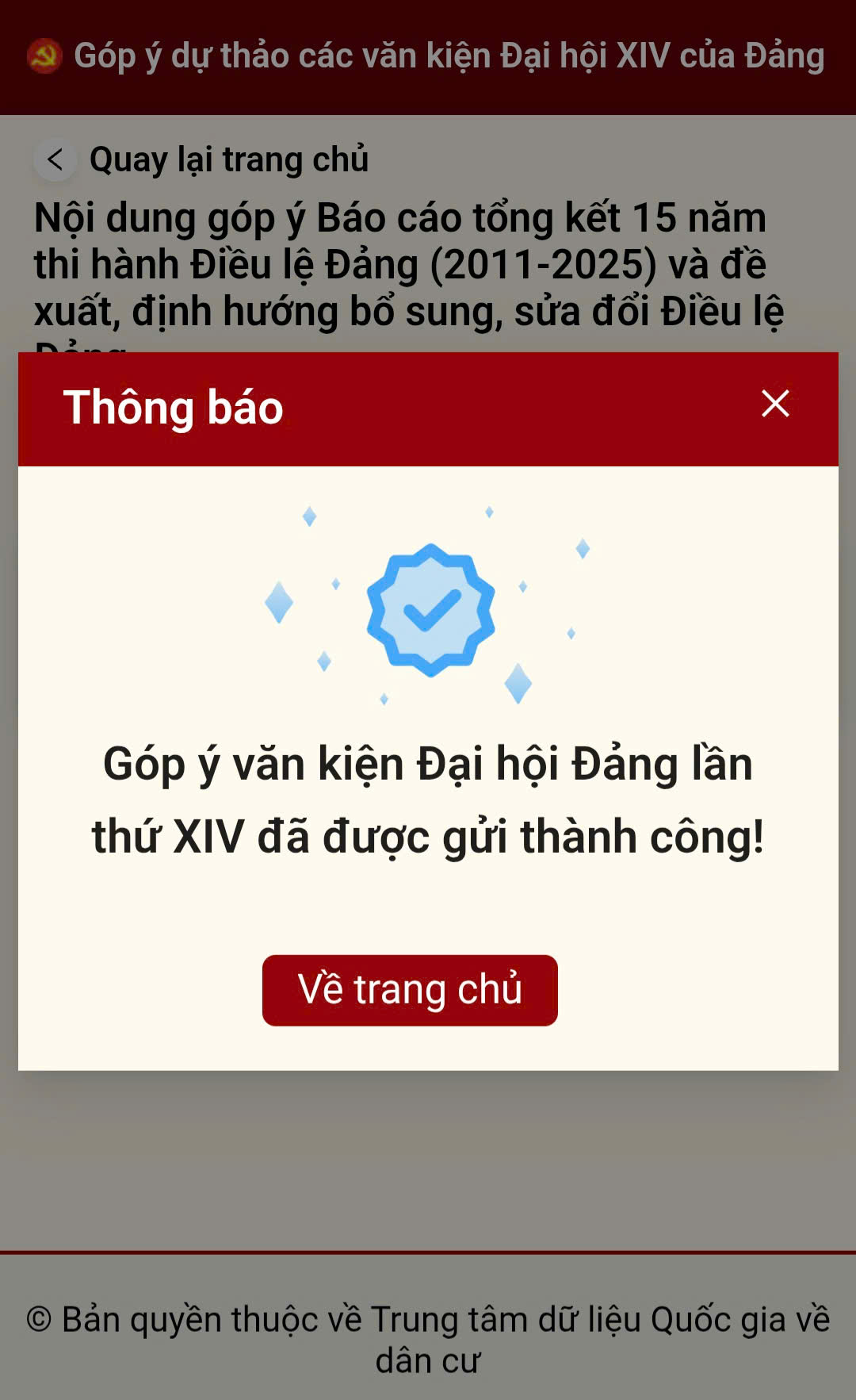 Theo đó, Đảng ủy xã chỉ đạo các chi bộ trực thuộc, các Phòng chuyên môn, đoàn thể tăng cường tuyên truyền về mục đích, ý nghĩa của việc lấy ý kiến Nhân dân đối với các dự thảo văn kiện. Đồng thời, hướng dẫn người dân sử dụng ứng dụng VNeID để tham gia góp ý thuận tiện, bảo đảm mọi tầng lớp Nhân dân đều có thể bày tỏ tâm tư, nguyện vọng và đề xuất giải pháp xây dựng Đảng, phát triển đất nước trong giai đoạn mới. Việc lấy ý kiến Nhân dân qua ứng dụng VNeID là bước tiến mới trong công tác dân vận, thể hiện tinh thần đổi mới, công khai, minh bạch và phát huy quyền làm chủ của Nhân dân. Đảng bộ xã sẽ tiếp tục đẩy mạnh công tác thông tin, hướng dẫn để mọi người dân đều có thể tham gia dễ dàng, hiệu quả.