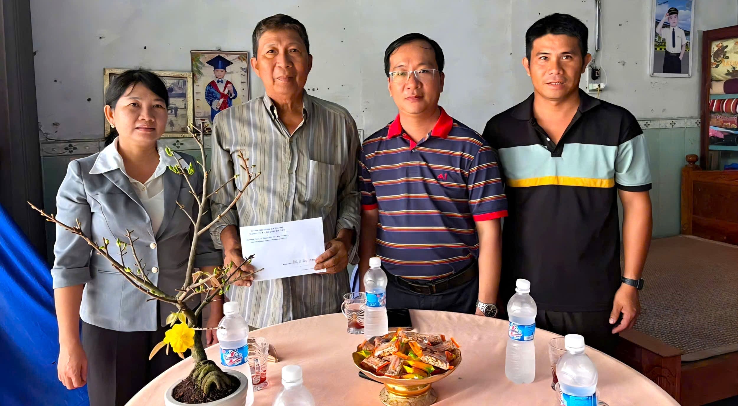 Đoàn do ông Phạm Hồng Phước – Bí thư Đảng ủy, Chủ tịch HĐND xã làm trưởng đoàn; tham gia có ông Lương Văn Tú Cường – Chủ tịch Ủy ban MTTQ Việt Nam xã và ông Nguyễn Thiện Tài – Phó Chủ tịch UBND xã.