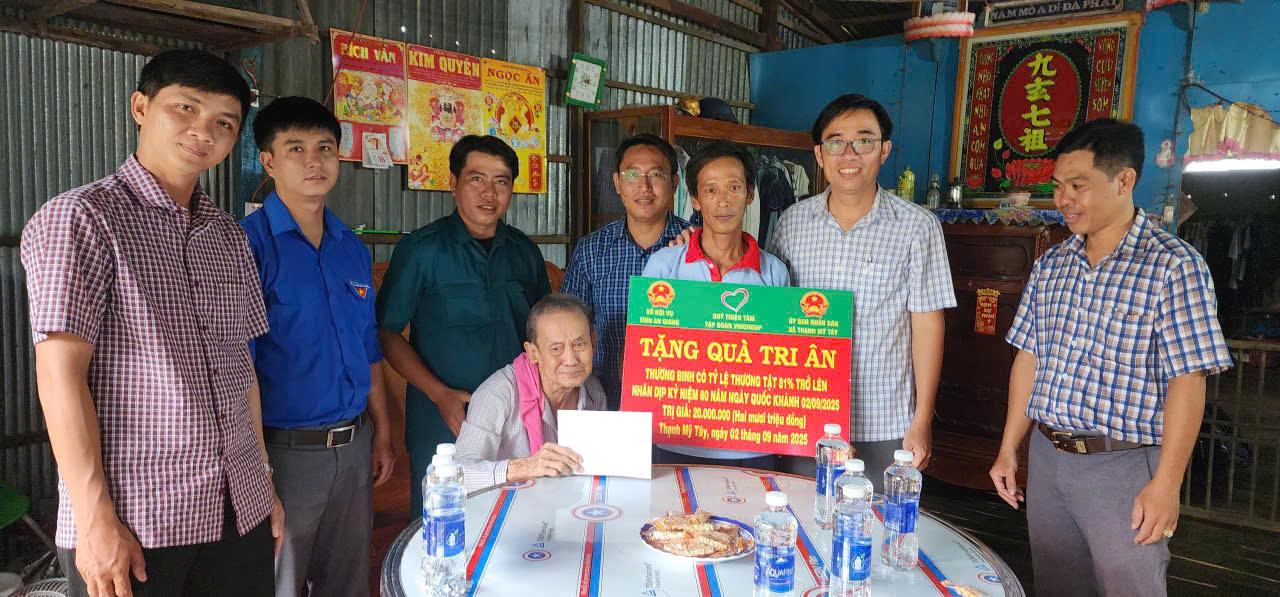Nhân kỷ niệm 80 năm Ngày Quốc khánh 02/9 (02/9/1945 – 02/9/2025), ngày 23/9/2025, đoàn công tác của Ủy ban nhân dân xã Thạnh Mỹ Tây do ông Nguyễn Thiện Tài – Phó Chủ tịch UBND xã làm trưởng đoàn đã đến thăm hỏi, động viên và tặng quà tri ân cho thương binh Nguyễn Văn Tâm, ngụ tại ấp Mỹ Bình.