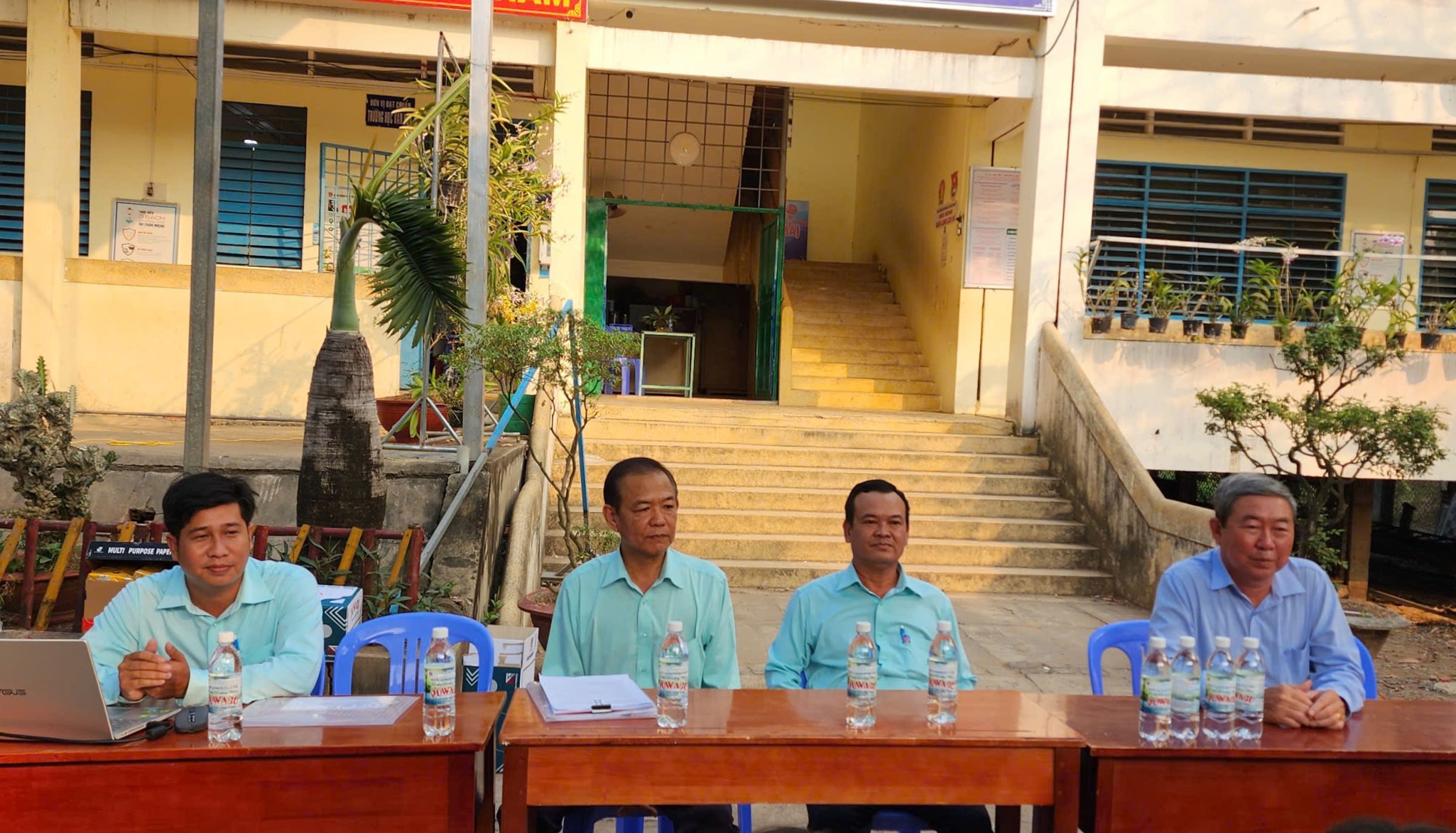 Đến dự có ông Phan Văn Sanh – Phó Giám đốc Xí nghiệp Điện nước Châu Phú; thầy Dương Thanh Long – Phó Hiệu trưởng Trường THCS Đào Hữu Cảnh cùng đông đảo giáo viên, học sinh tham gia.