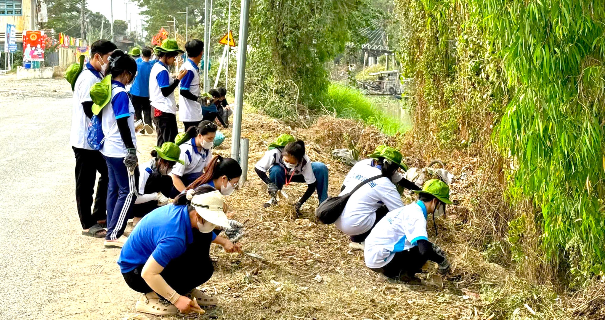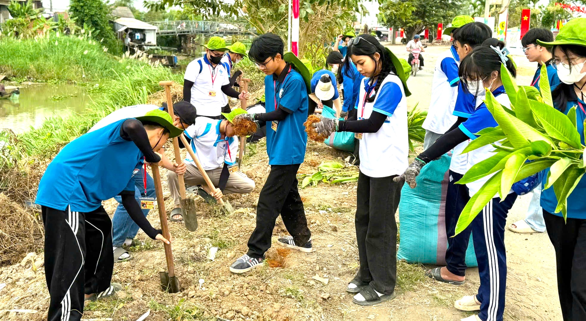 Theo đó, lực lượng đoàn viên và sinh viên tình nguyện đã tiến hành cải tạo cảnh quan tuyến đường dài khoảng 200m, trồng 1.000 chậu hoa Thiên Điểu và Mai Vạn Phúc. Công trình góp phần tạo mảng xanh, chỉnh trang môi trường nông thôn, đồng thời nâng cao ý thức bảo vệ môi trường và trách nhiệm cộng đồng trong việc giữ gìn mỹ quan địa phương.