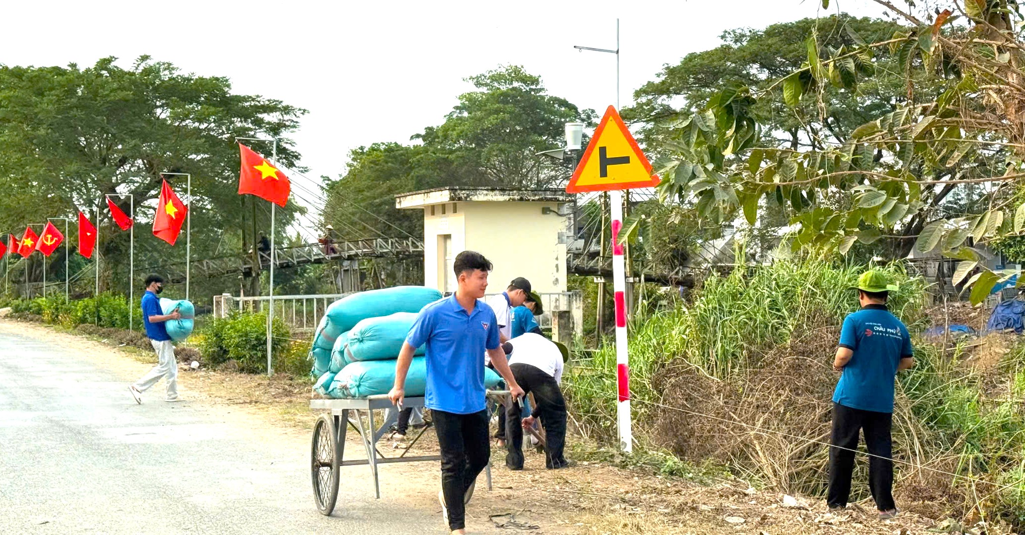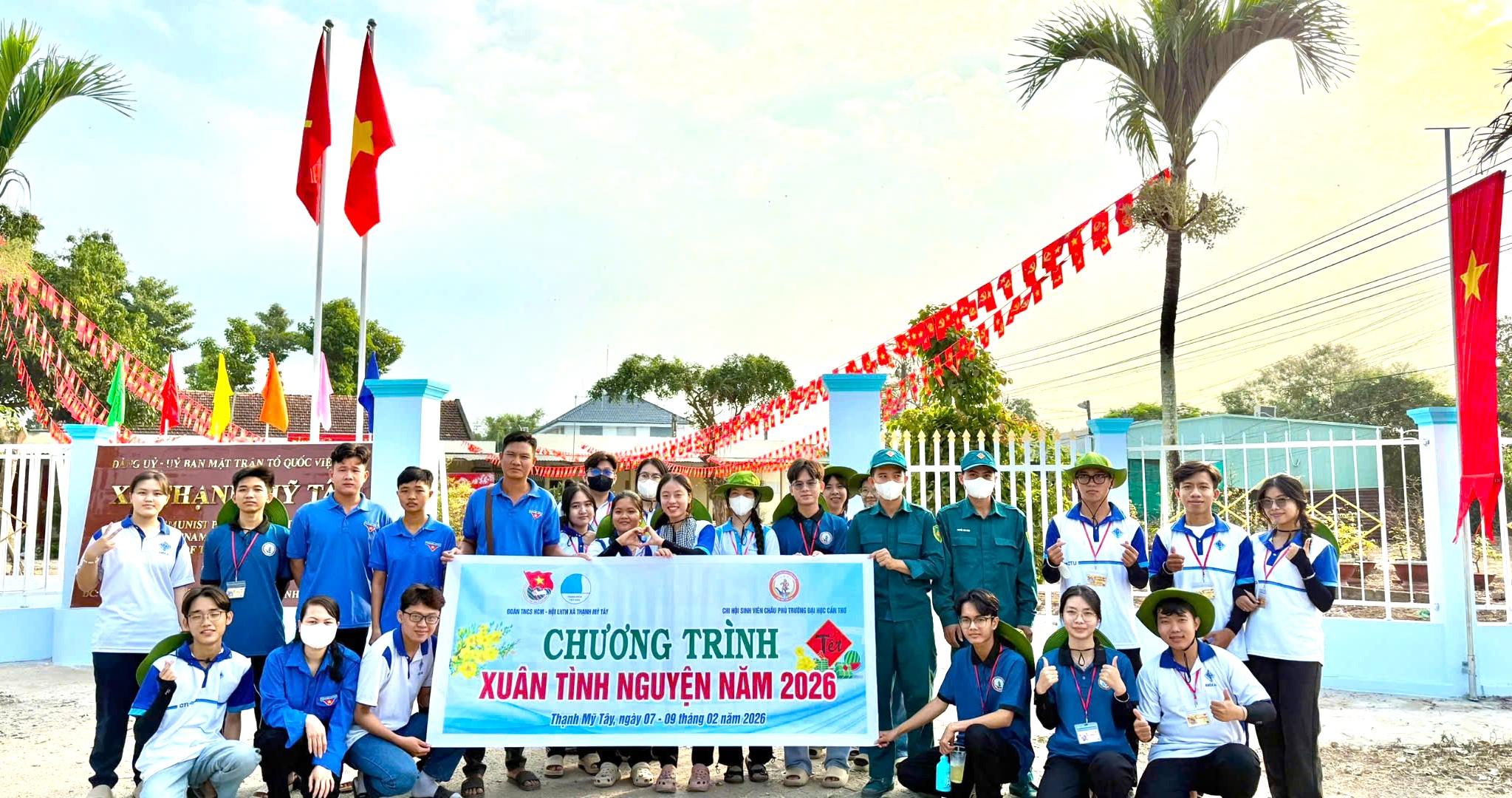 Trong khuôn khổ chương trình Xuân tình nguyện năm 2026, Đoàn Thanh niên – Hội LHTN Việt Nam xã Thạnh Mỹ Tây phối hợp Chi hội Sinh viên Châu Phú – Trường Đại học Cần Thơ tổ chức xây dựng công trình thanh niên “đường sáng - xanh - sạch - đẹp” tại tuyến Đông Kênh Cốc.