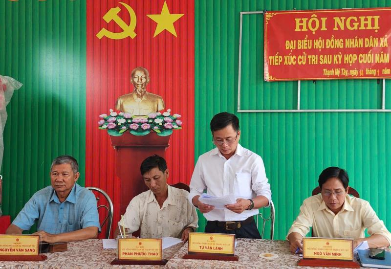 Sau kỳ họp cuối năm 2025, đại biểu Hội đồng nhân dân xã Thạnh Mỹ Tây đã tổ chức hội nghị tiếp xúc cử tri tại xã nhằm thông tin kết quả kỳ họp và lắng nghe ý kiến, kiến nghị của cử tri địa phương.