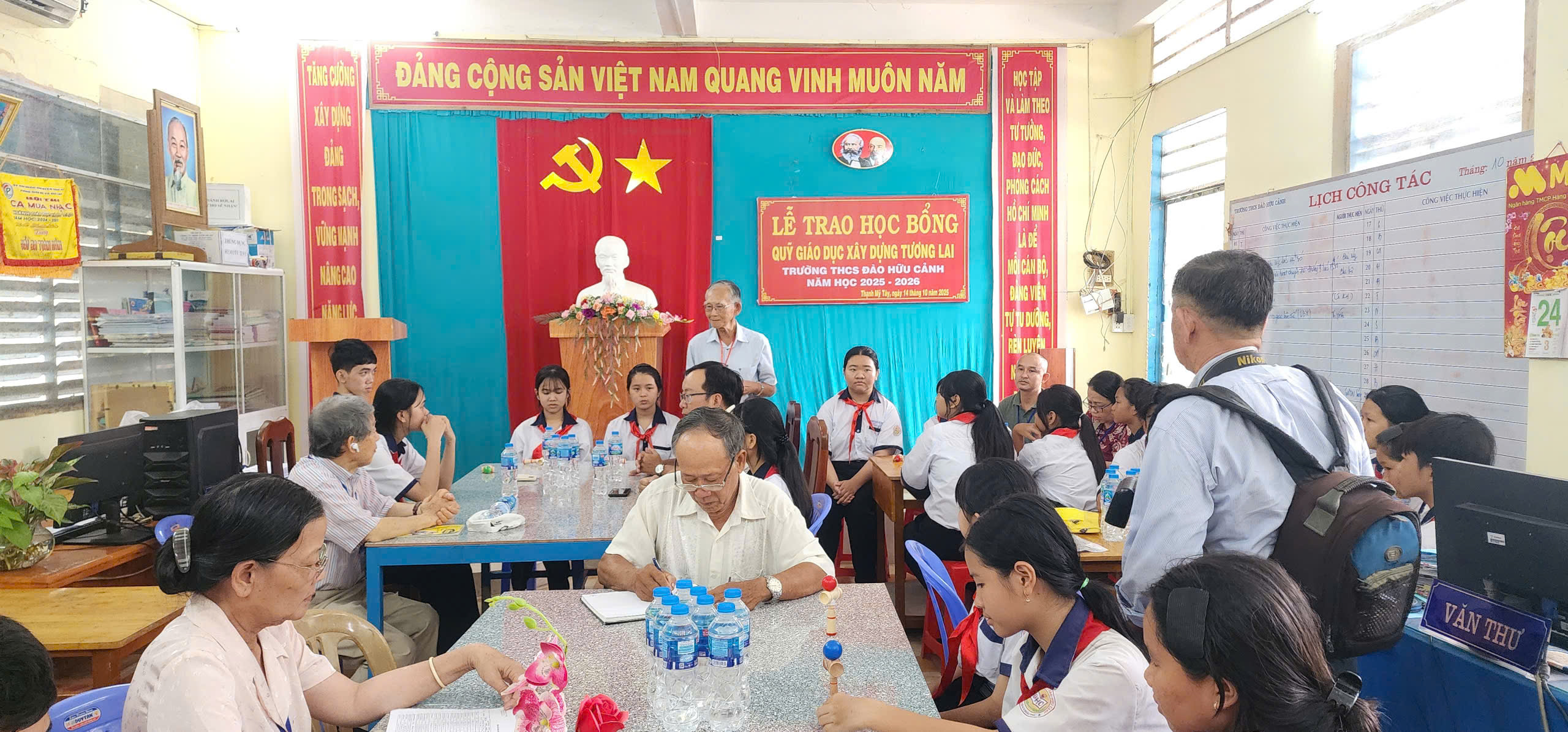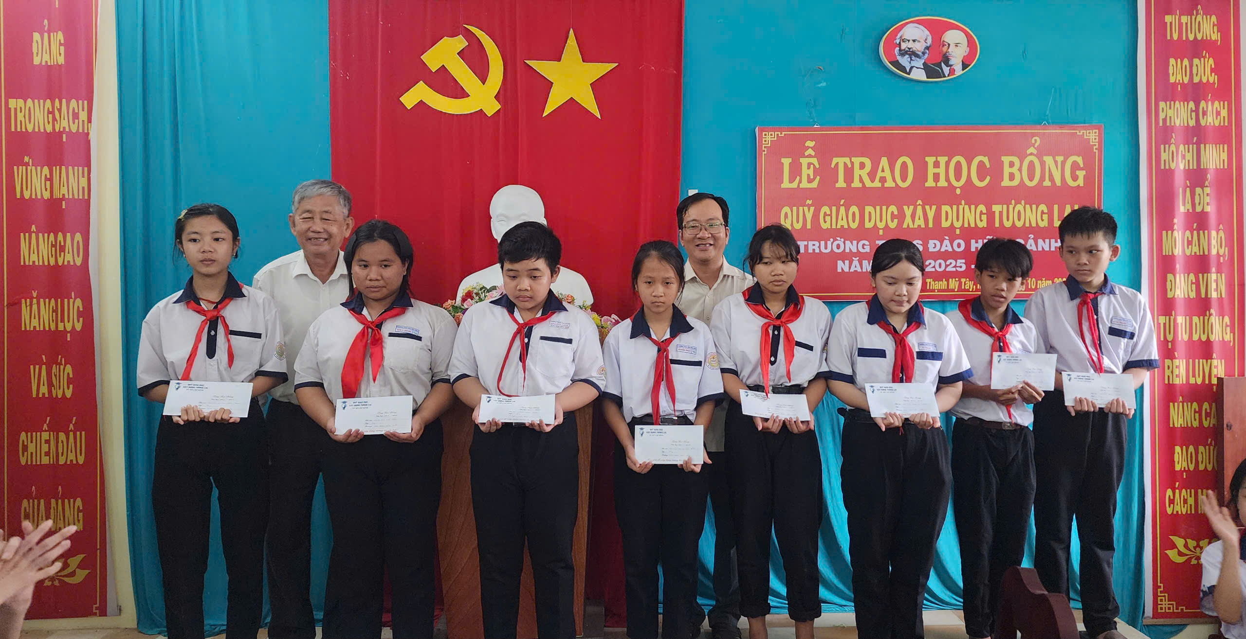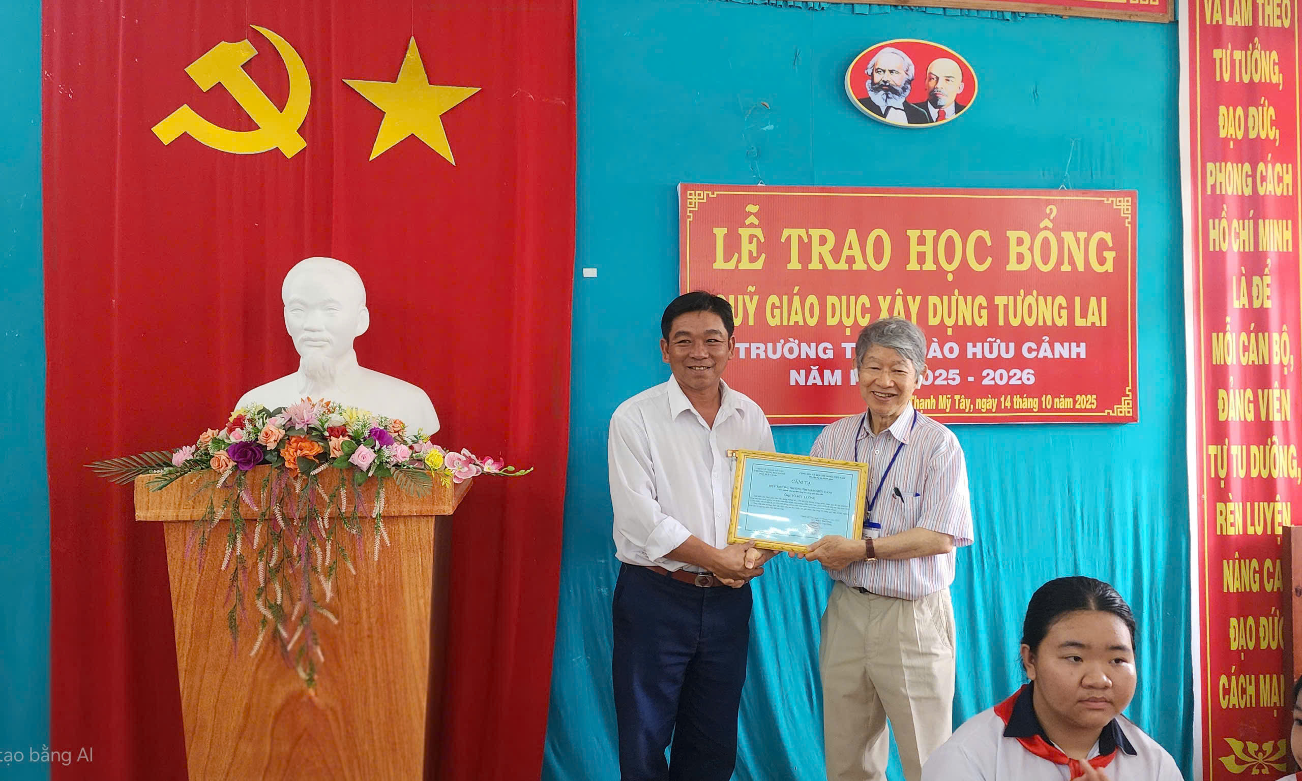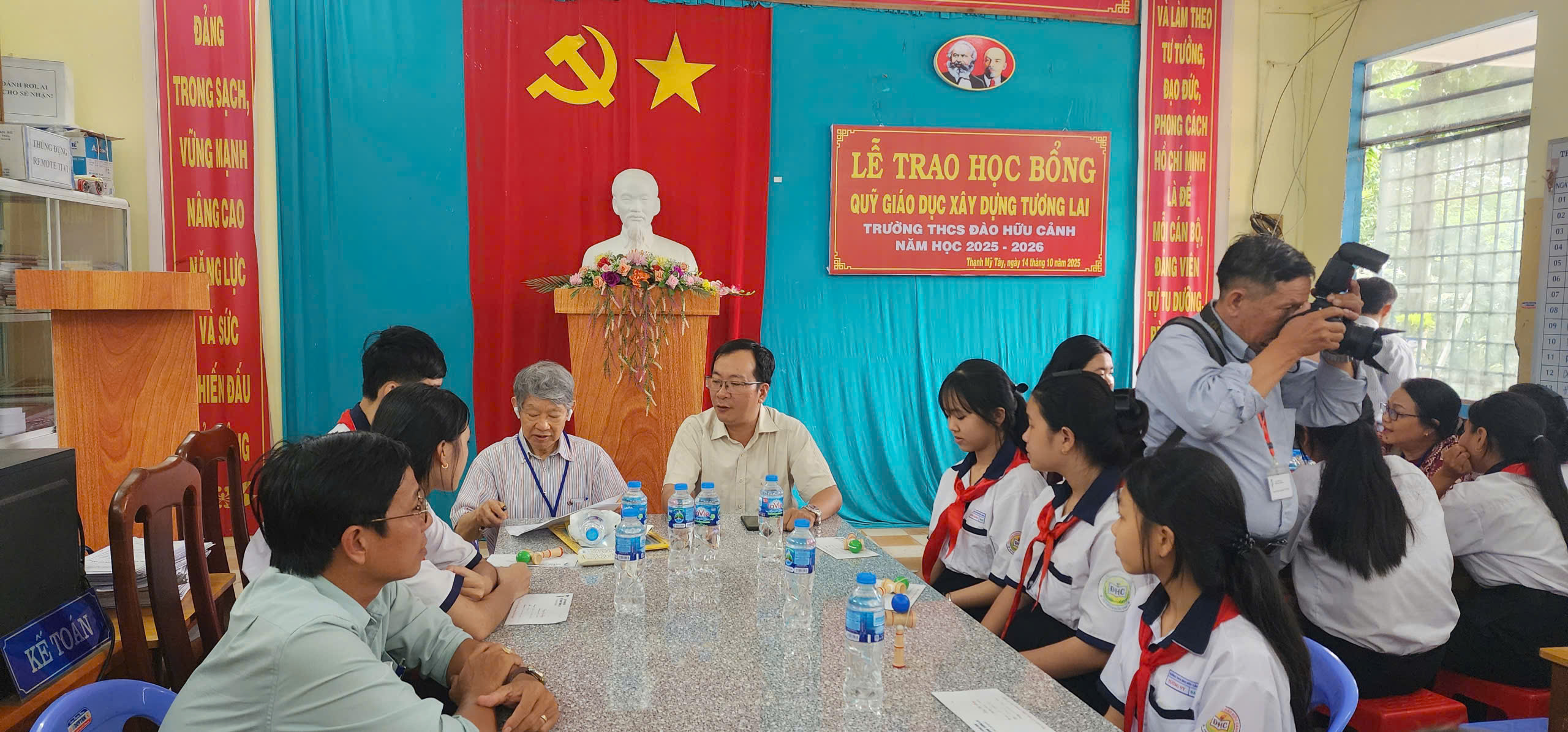 Ngày 14/10/2025, Quỹ Giáo dục Xây dựng Tương lai phối hợp cùng Ủy ban Mặt trận Tổ quốc Việt Nam xã Thạnh Mỹ Tây tổ chức trao học bổng cho học sinh Trường Trung học cơ sở Đào Hữu Cảnh, là con em thuộc hộ nghèo, cận nghèo và hộ có hoàn cảnh khó khăn trên địa bàn xã.