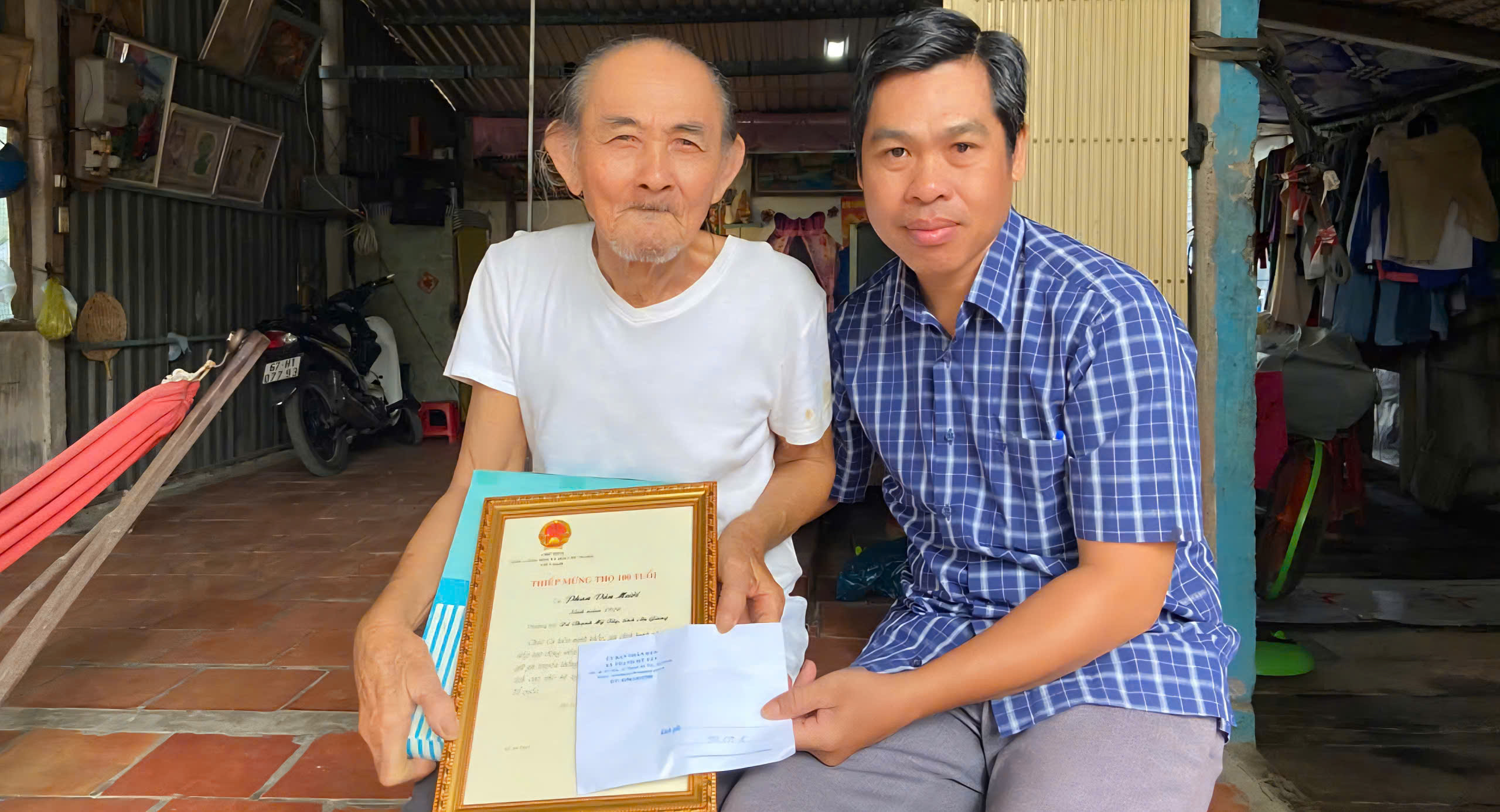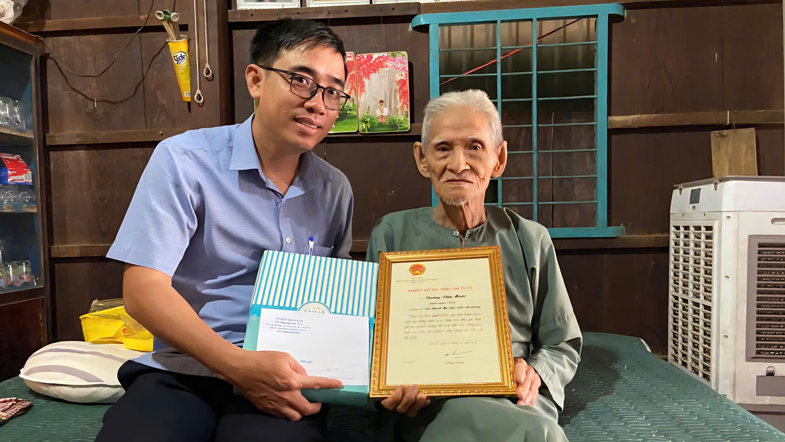 UBND xã Thạnh Mỹ Tây thăm, chúc Tết và mừng thọ các cụ tròn 100 tuổi