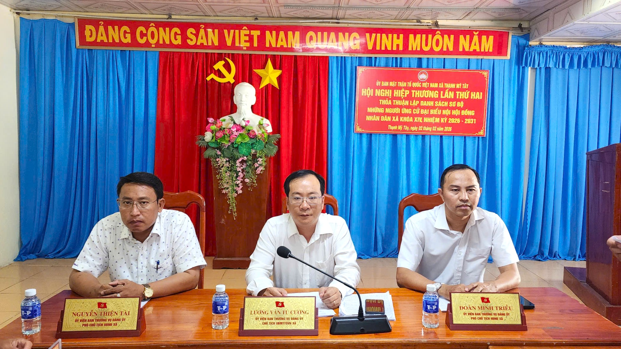 Ngày 02/02/2026, Ủy ban Mặt trận Tổ quốc Việt Nam xã Thạnh Mỹ Tây tổ chức Hội nghị hiệp thương lần thứ hai nhằm thỏa thuận lập danh sách sơ bộ những người ứng cử đại biểu Hội đồng nhân dân xã khóa XIV, nhiệm kỳ 2026 – 2031.