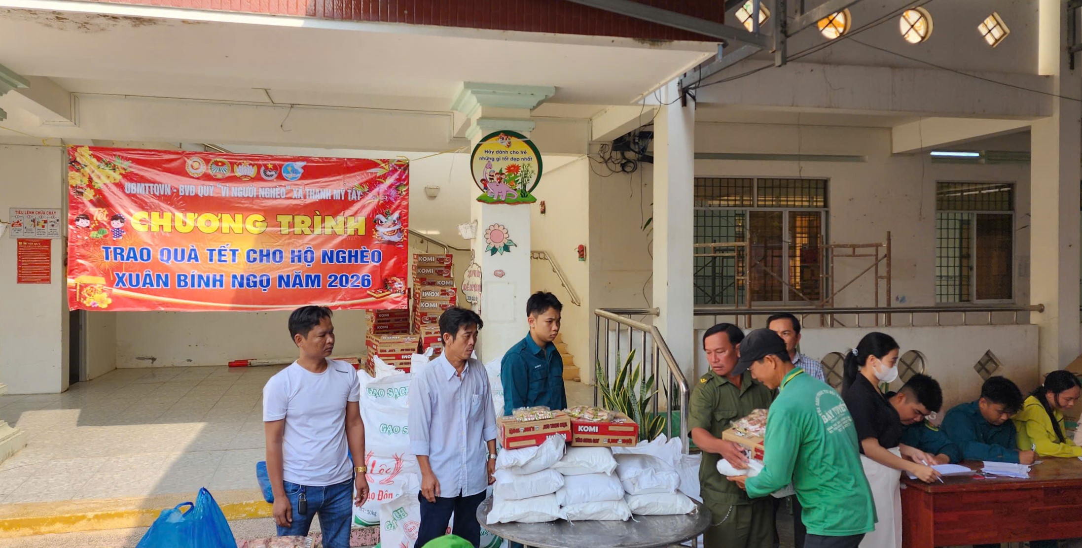 Mỗi phần quà gồm: gạo, mì và bánh được trao tận tay người dân, góp phần hỗ trợ các gia đình hộ nghèo chuẩn bị đón Tết cổ truyền. Tại buổi trao quà, đại diện Ủy ban Mặt trận Tổ quốc Việt Nam xã đã thăm hỏi đời sống, động viên bà con nỗ lực lao động sản xuất, vươn lên ổn định cuộc sống, đồng thời gửi lời chúc năm mới sức khỏe, an khang.