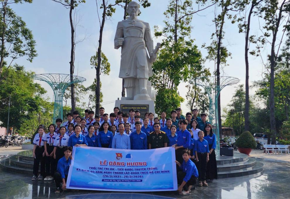 Nhân kỷ niệm 95 năm Ngày thành lập Đoàn TNCS Hồ Chí Minh (26/3/1931 – 26/3/2026), ngày 26/3/2026, Đoàn Thanh niên – Hội Liên hiệp Thanh niên xã Thạnh Mỹ Tây tổ chức hoạt động dâng hương tại Đền thờ Quản cơ Trần Văn Thành – vị anh hùng dân tộc đã lãnh đạo cuộc khởi nghĩa