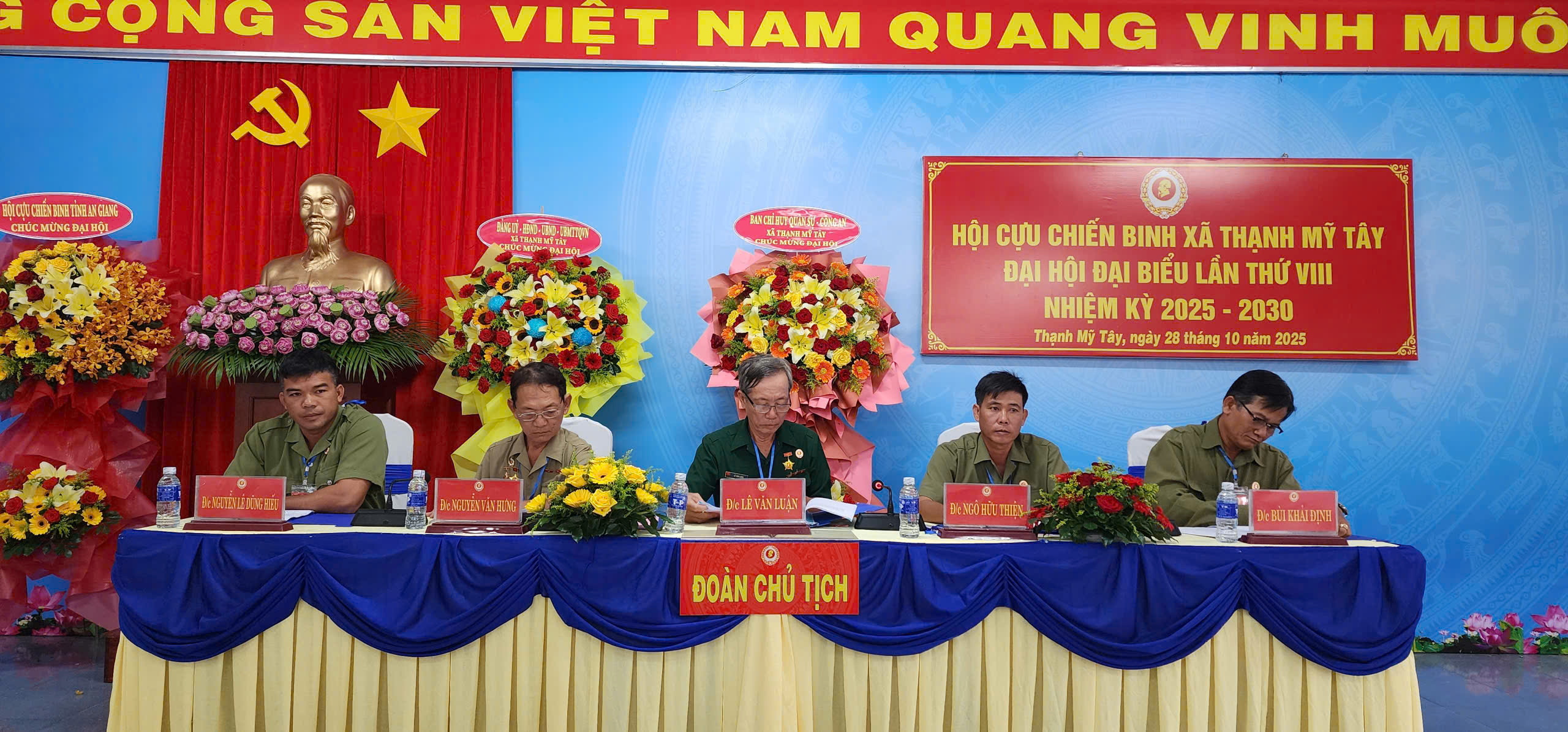 Ngày 28/10/2025, Hội Cựu chiến binh xã Thạnh Mỹ Tây tổ chức Đại hội Đại biểu lần thứ VIII, nhiệm kỳ 2025 – 2030. Đến dự Đại hội có đồng chí Phạm Hồng Phước – Bí thư Đảng ủy, Chủ tịch Hội đồng nhân dân xã; ông Lương Văn Tú Cường – Ủy viên Ban Thường vụ Đảng ủy, Chủ tịch Ủy ban Mặt trận Tổ quốc Việt Nam xã; cùng đại diện lãnh đạo các ngành, đoàn thể và 80 đại biểu chính thức đại diện cho hội viên toàn xã.