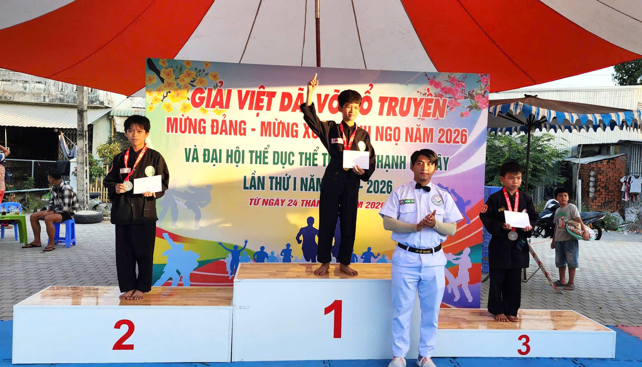 Nội dung thi đối kháng Nam: hạng cân 30–33 kg: Huy chương vàng Nguyễn Ngọc Minh (ấp Cầu Dây); huy chương bạc Nguyễn Phi Tiến (ấp Hưng Lợi); huy chương đồng Thái Quang Minh (ấp Long Châu); hạng cân 33–36 kg: Huy chương vàng Hồ Quỳnh Đăng Khôi (ấp Long Châu); huy chương bạc Trịnh Kiến Quốc (ấp Thạnh Hòa); hạng cân 36–39 kg: Huy chương vàng Nguyễn Quang Đức (ấp Hưng Thới); huy chương bạc Phạm Văn Trường (ấp Long Hưng); hạng cân 39–42 kg: Huy chương vàng Nguyễn Thiện Khang (ấp Hưng Lợi); huy chương bạc Nguyễn Hoàng Minh Nhựt (ấp Hưng Thới); huy chương đồng Phan Thái Bảo (ấp Tây An). Nội dung thi đối kháng nữ: hạng cân 30–33 kg: Huy chương vàng Nguyễn Kỳ Kỳ (ấp Hưng Trung); huy chương bạc Trần Ngọc Huyền Trân (ấp Tây An); huy chương đồng Nguyễn Ngọc Huỳnh Giao (ấp Hưng Lợi); hạng cân 33–36 kg: Huy chương vàng Nguyễn Thị Kim Kha (ấp Cầu Dây); huy chương bạc Nguyễn Đặng Bảo Ngọc (ấp Ba Xưa); hạng cân 36–39 kg: Huy chương vàng Lê Ngọc Vy (ấp Ba Xưa); huy chương bạc Nguyễn T