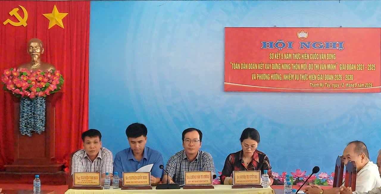 Ngày 12/9/2025, Ủy ban Mặt trận Tổ quốc Việt Nam xã Thạnh Mỹ Tây tổ chức hội nghị sơ kết 5 năm thực hiện Cuộc vận động “Toàn dân đoàn kết xây dựng nông thôn mới, đô thị văn minh” giai đoạn 2021 – 2025 và triển khai phương hướng, nhiệm vụ giai đoạn 2026 – 2030. Chủ trì hội nghị ông Lương Văn Tú Cường – UV.BTV Đảng ủy, Chủ tịch Ủy ban Mặt trận Tổ quốc Việt Nam xã.